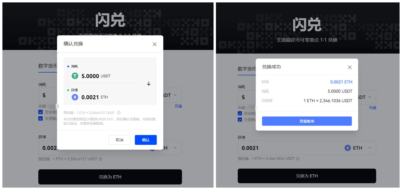 2、由于市场行情波动,闪兑价格与现货盘口价格会存在一定的差价,如果价差过大,获得的币种数量少于二次下单确认页面的至少获得量,兑换订单将不会成交。